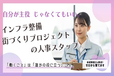 | 職種名 | インフラ整備・街づくりプロジェクトの人事|裏方で人を支える! |
