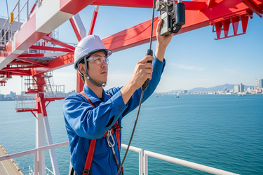 港に並んでいる大きいクレーンのメンテナンスを