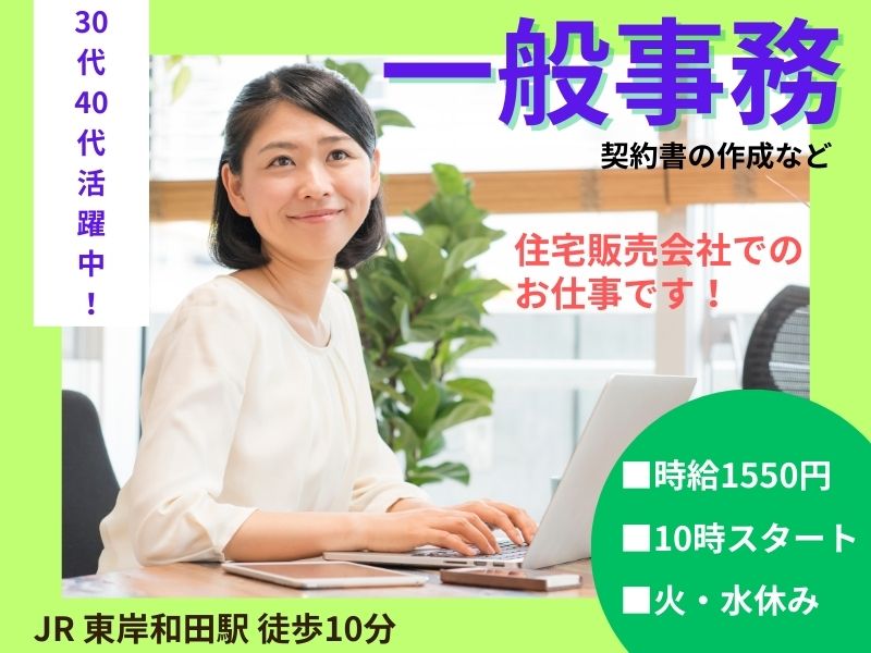 【一般事務 契約書作成など】住宅販売会社/朝ゆっくり10:00スタート/火曜水曜お休み
